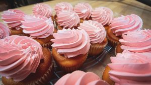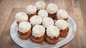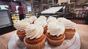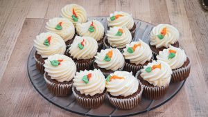 All of our cakes and cupcakes are fresh and finished with Italian buttercream or handmade, real cream cheese icing. 8” cakes serve 10-12 and 10” cakes serve 10-20.